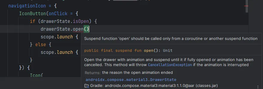 On common error using Jetpack compose is when you try to use suspend functions inside a composable. The error looks like this: