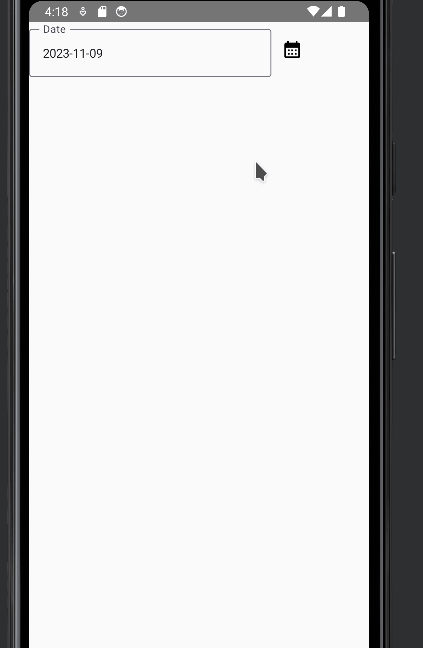 Using both components we can build a a custom datepicker acording our requeriment. In my case, I just needed a TextField that shows the Date and that shows the Dialog when it is clicked.
