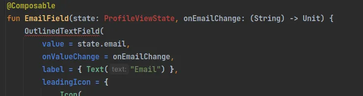 EmailField(state.email, onEmailChange = { viewModel.setEmail(it) })