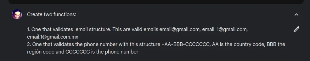 To test the code it gave me before I’m going to ask for the unit tests of the two functions