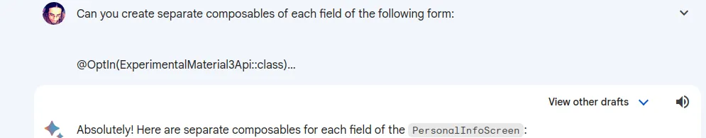 The same principle can be applied to composables in Jetpack Compose. And it can be achieved easily using Gemini Bard IA.
