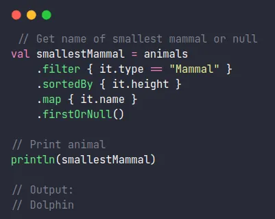 val smallestAnimalsFirst = animals.sortedBy { it.height }