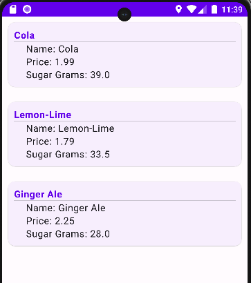Text("Sugar Grams: " + it.sugarGrams)
