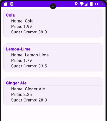 Text("Sugar Grams: " + it.sugarGrams)